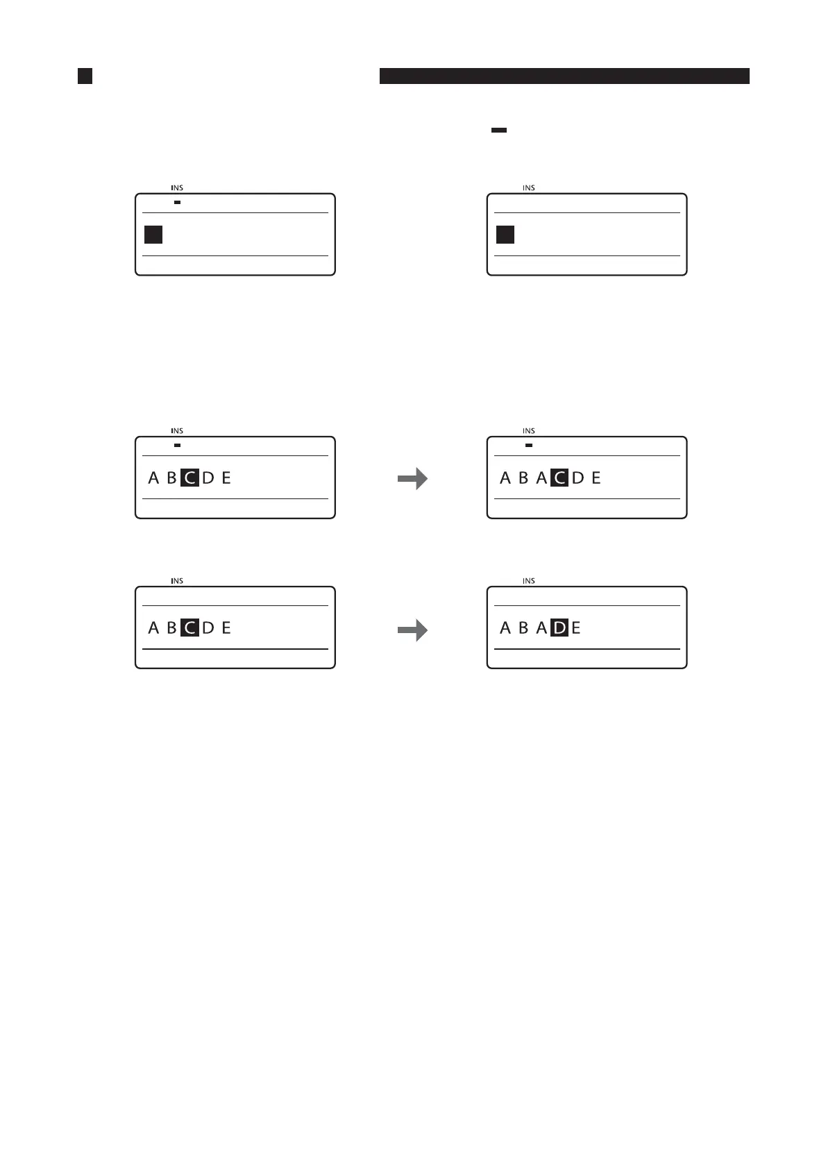 “ABACDE”, since the character that is input is inserted to the left of the cursor. If the same operation is