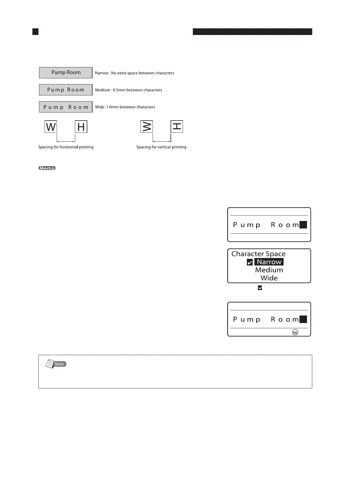 The spacing between printed characters can be changed for individual pages.