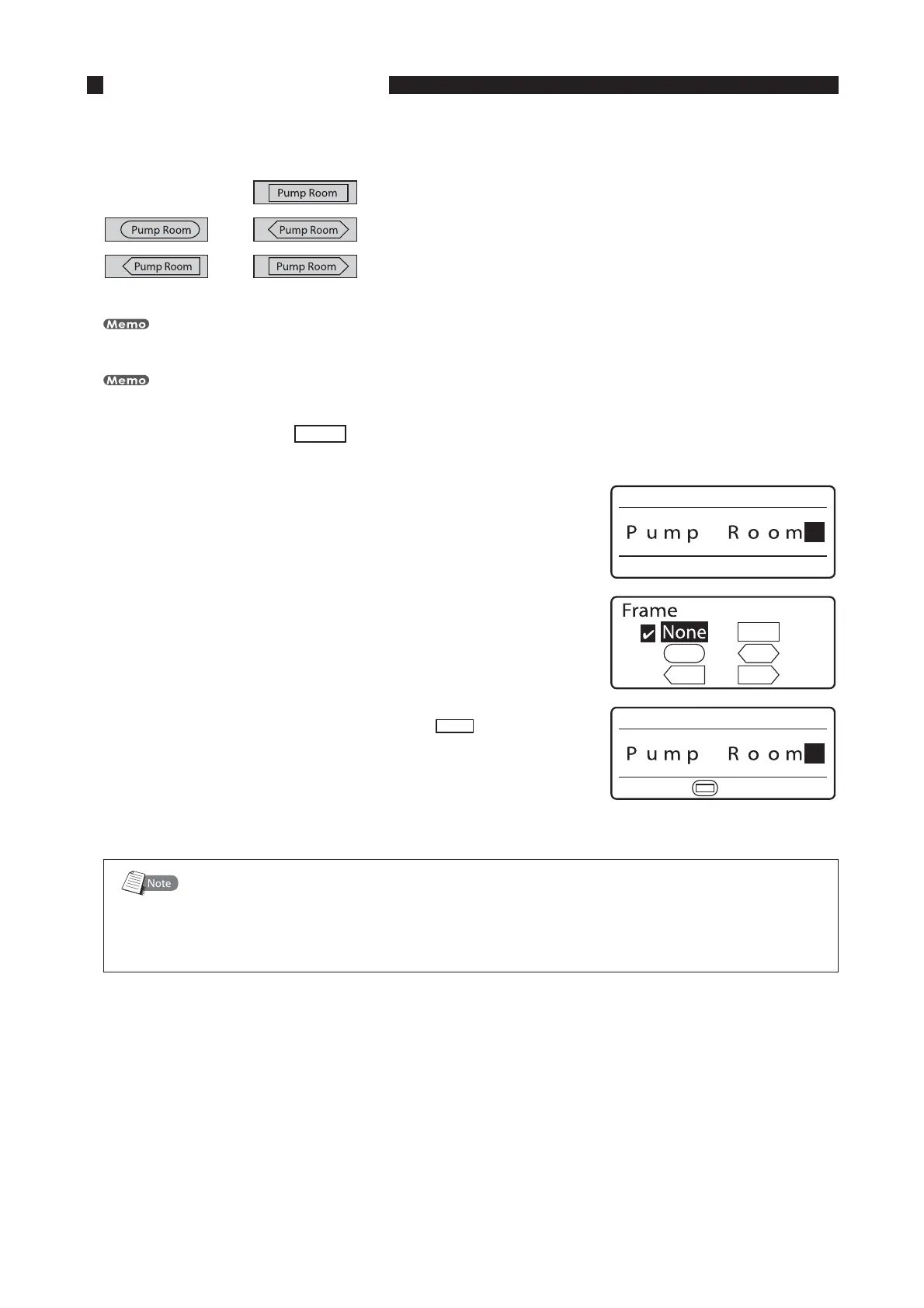 It is possible to add various types of frames to characters as shown below. Initially, the printer is set to print
