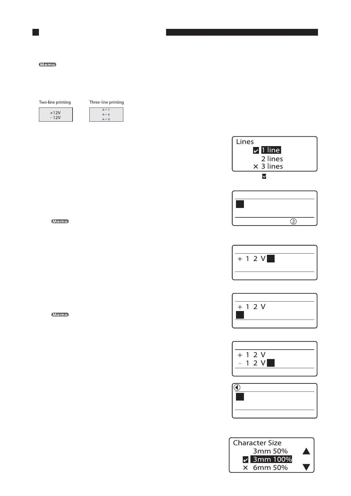 It is possible to print on two lines or three lines as shown below. Initially, the printer is set to print on one line.