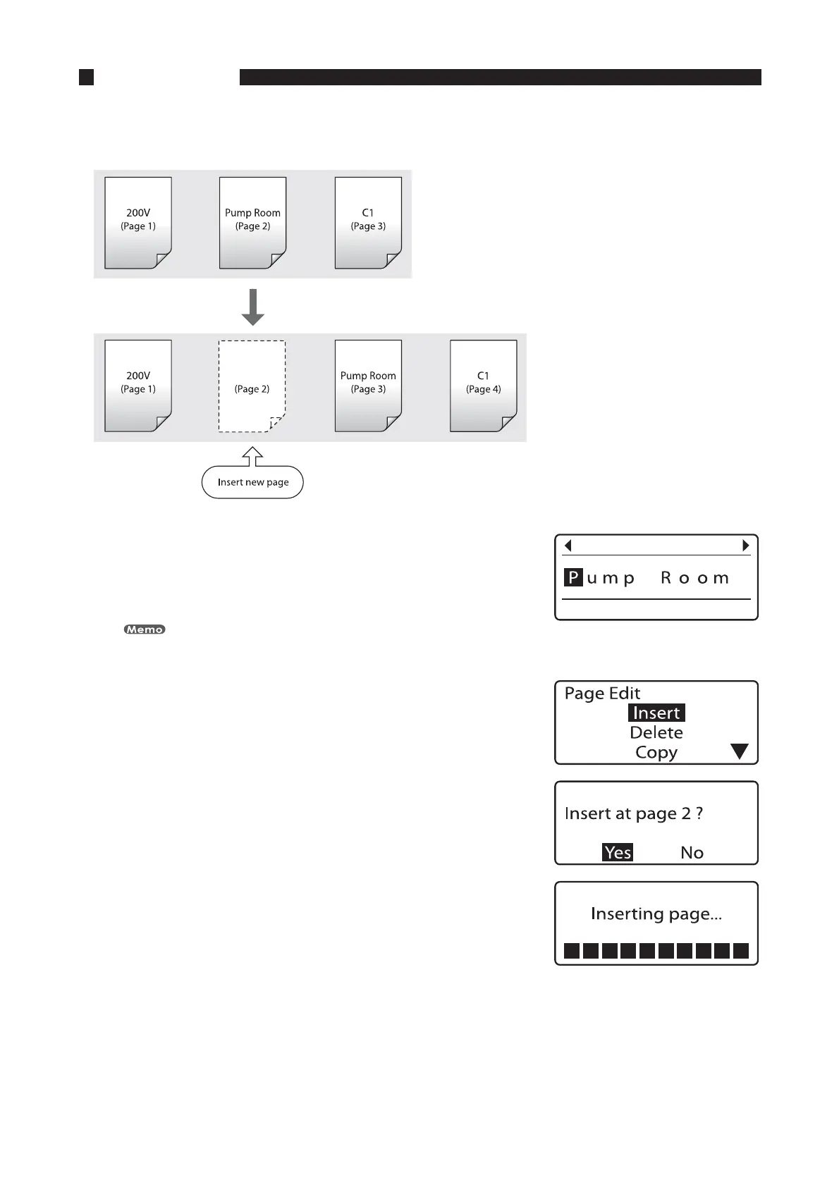 It is possible to insert blank pages. Use this function if you want to insert a new page in a specific location after