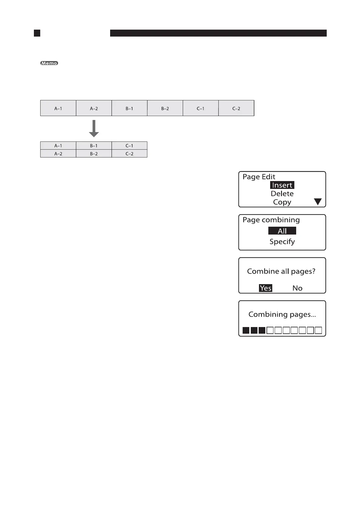 The Page combining selection display appears. •