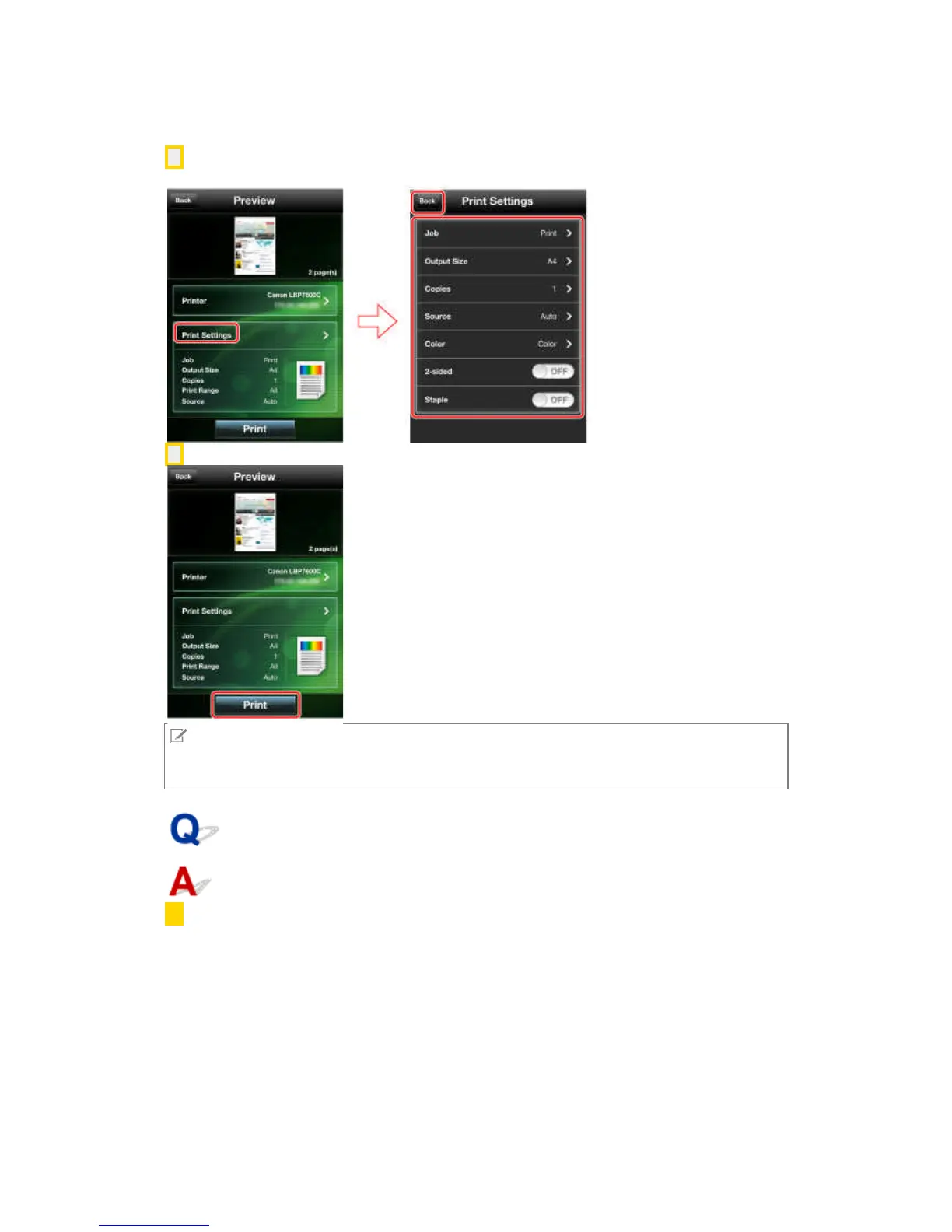 6. If you want to configure detailed print settings, tap [Print Settings] → make the required settings