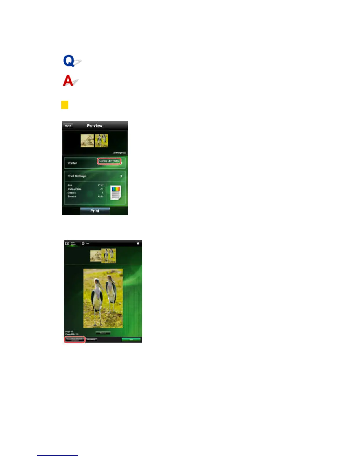 1. In the [Preview] screen, confirm or select the printer you want to use.