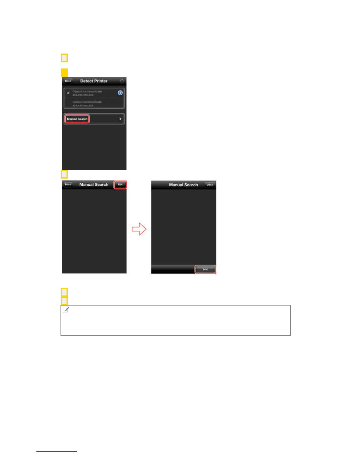 1. Tap [Manual Search] in the [Detect Printer] screen.