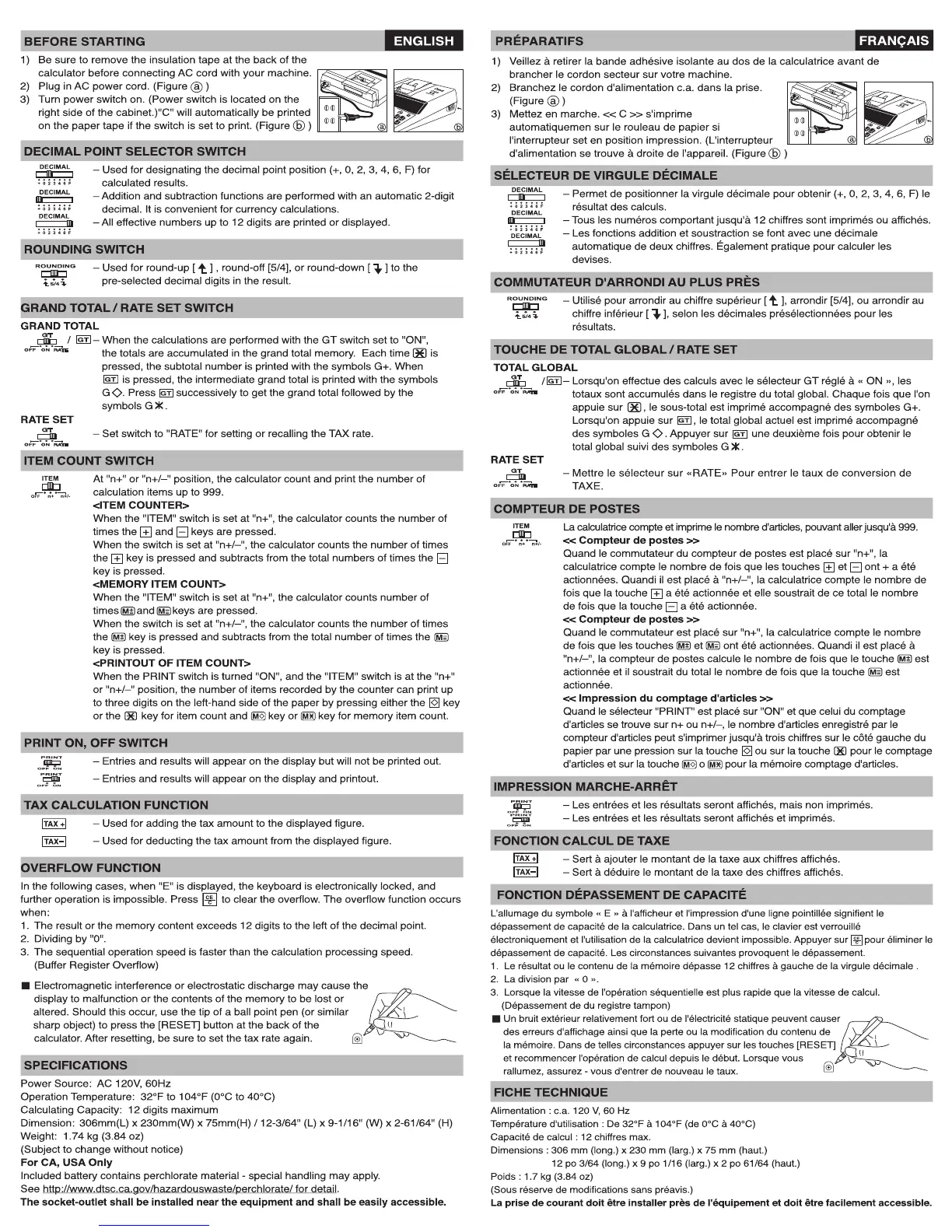 Canon MP21DX - Calculator Switches and Functions Explained; Decimal Point Selector Switch; Rounding Switch; Grand Total and Rate Set Switch