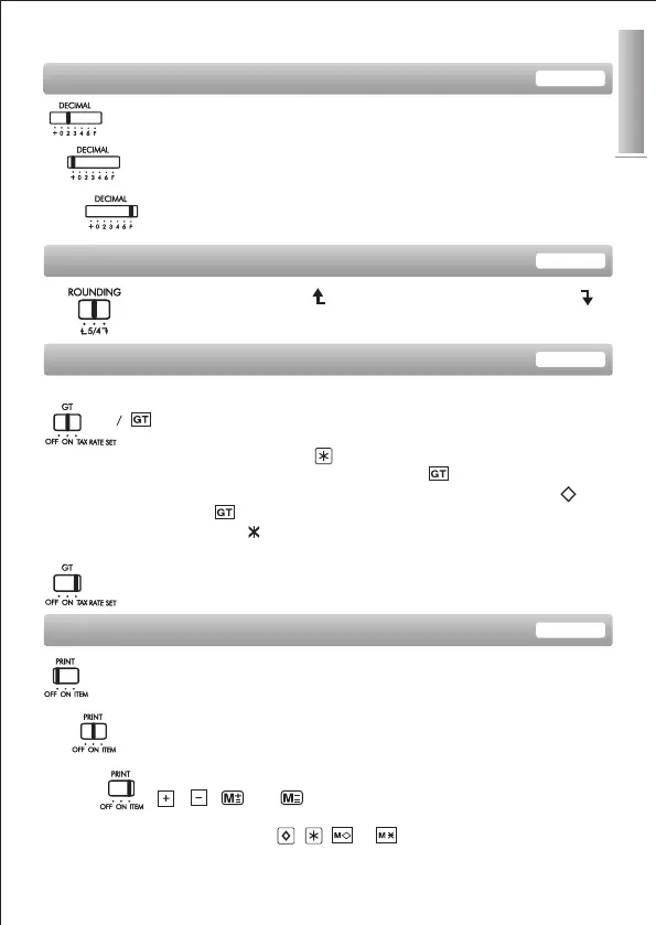 – Set switch to "TAX RATE SET" for setting or recalling the TAX