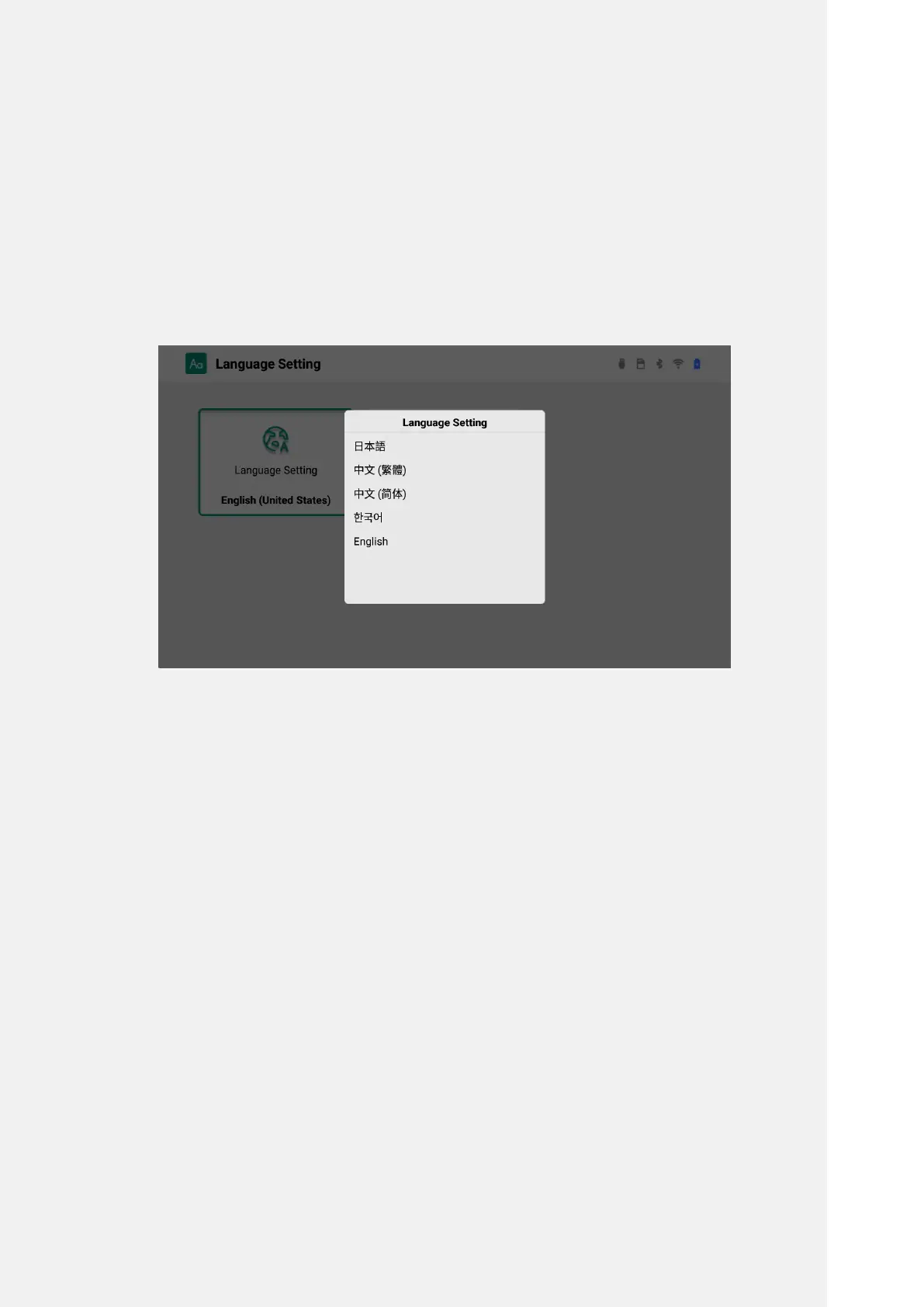 Tap 'Language Settings' on the Settings window to select the language you