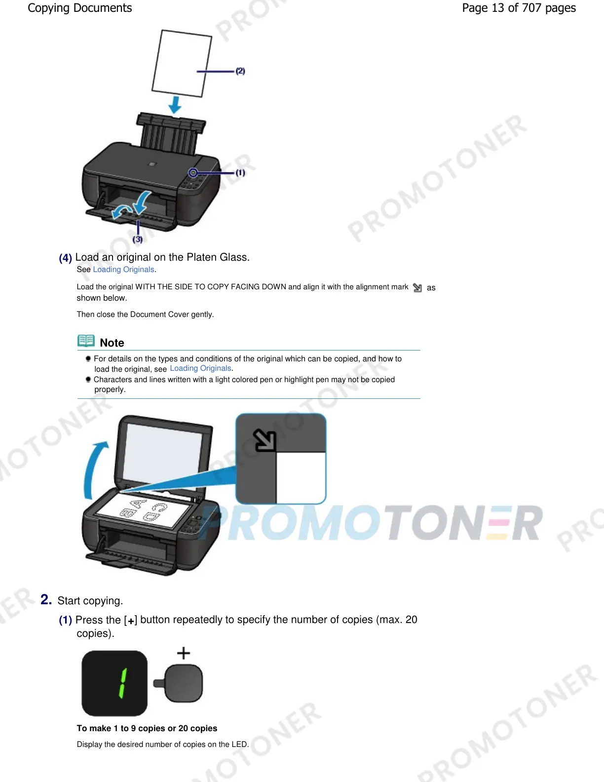 Load the original WITH THE SIDE TO COPY FACING DOWN and align it with the alignment mark