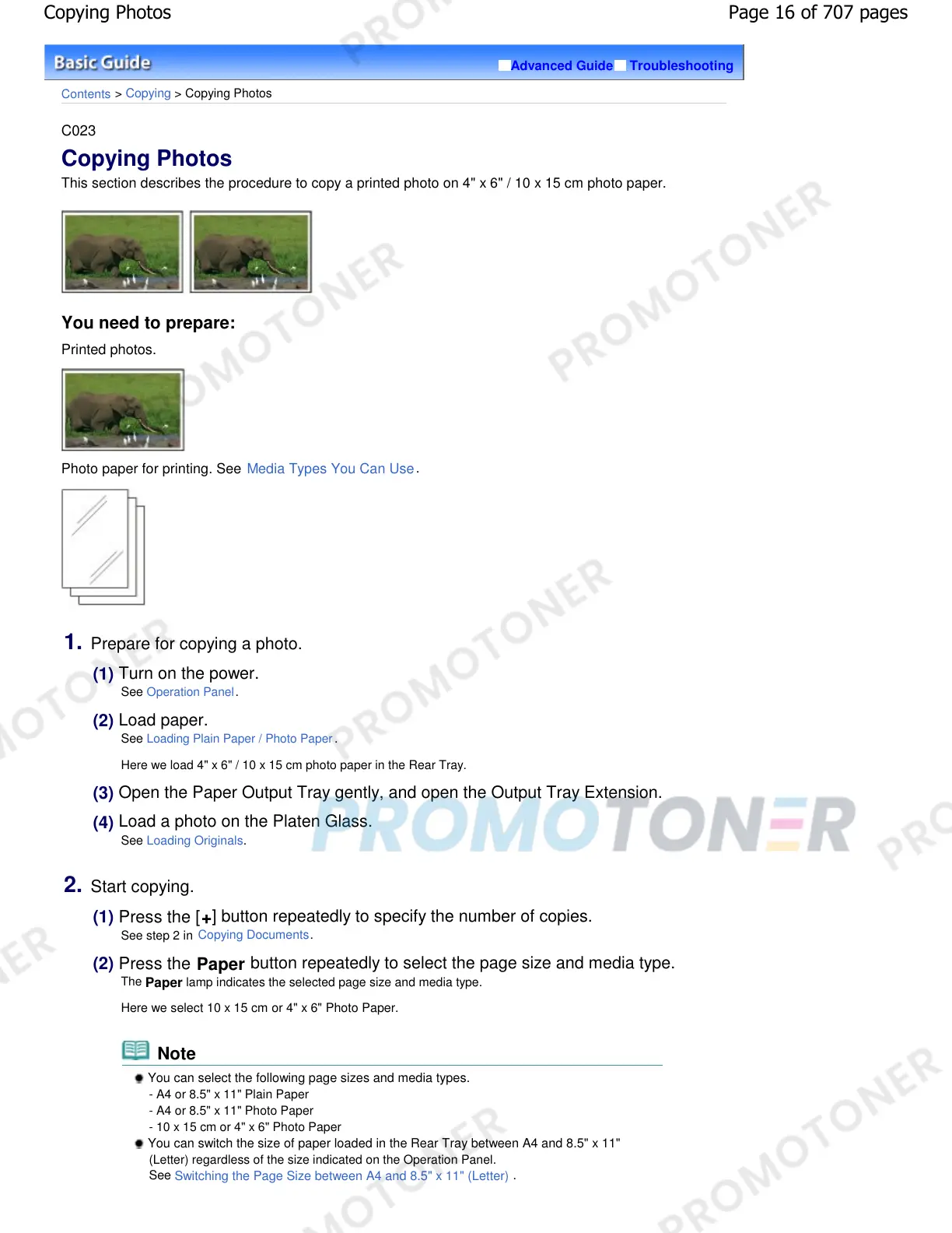 This section describes the procedure to copy a printed photo on 4" x 6" / 10 x 15 cm photo paper.