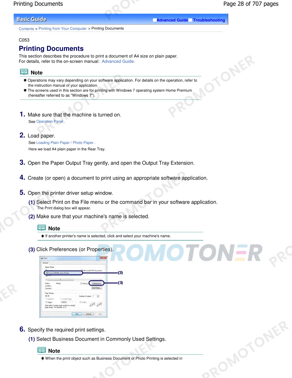 The screens used in this section are for printing with Windows 7 operating system Home Premium