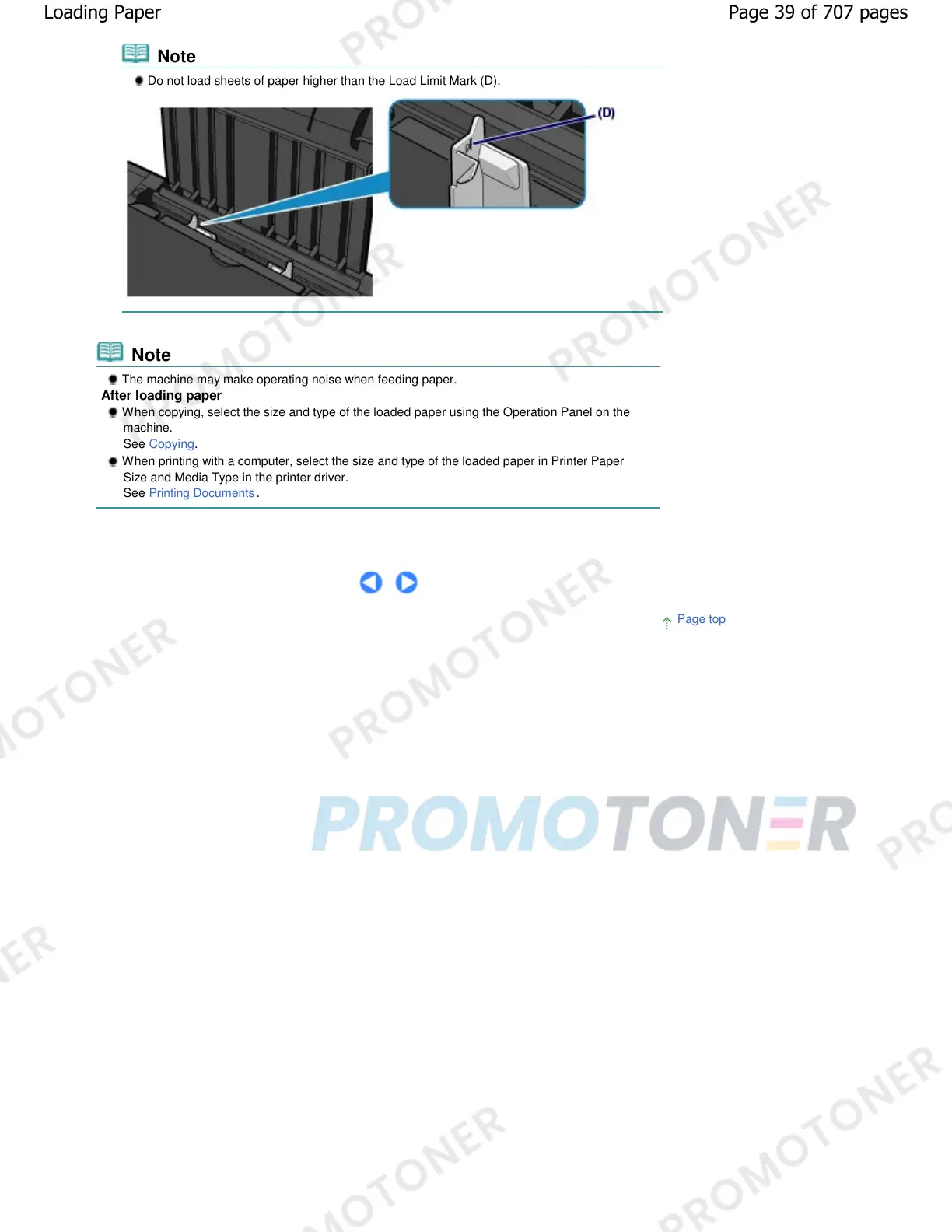 Do not load sheets of paper higher than the Load Limit Mark (D).