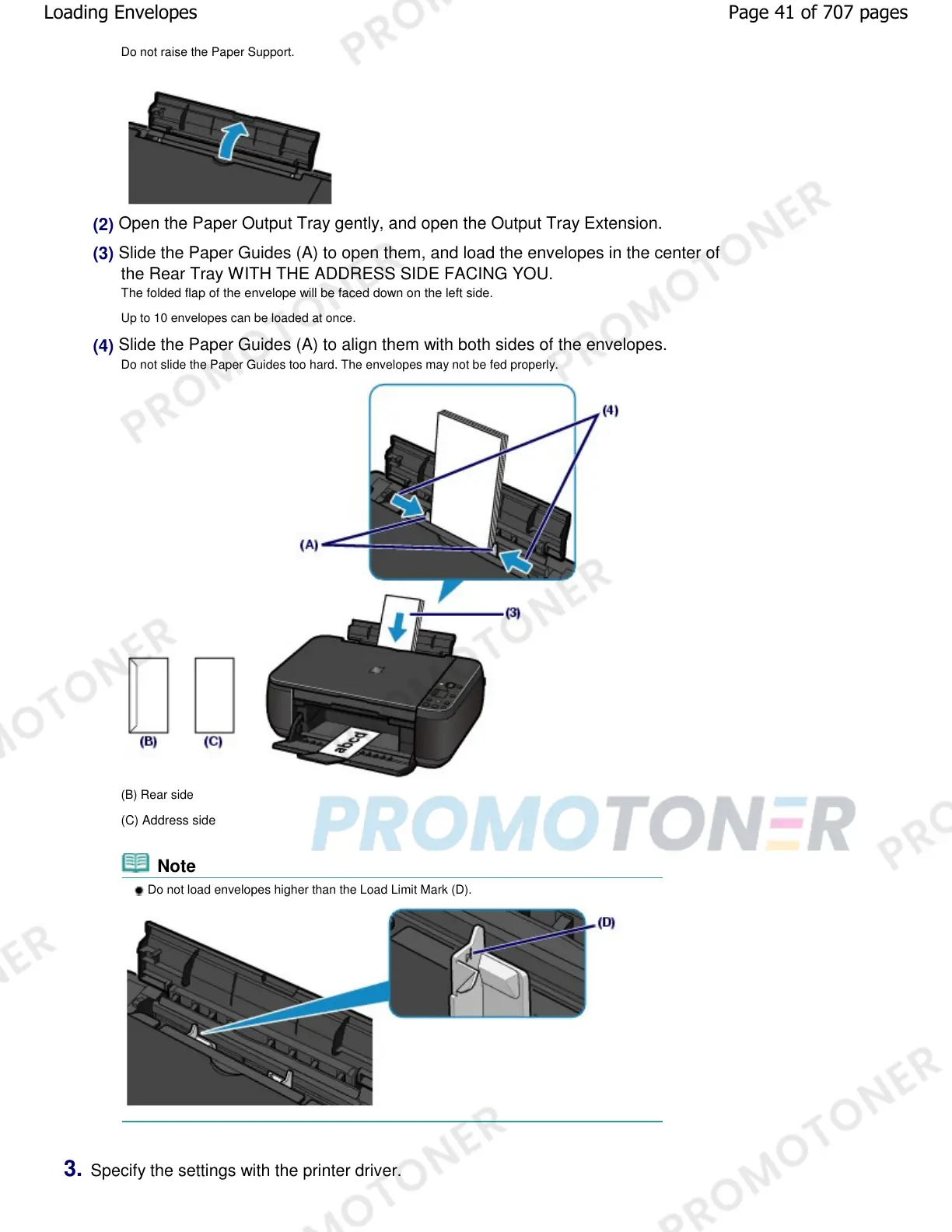 Do not load envelopes higher than the Load Limit Mark (D).