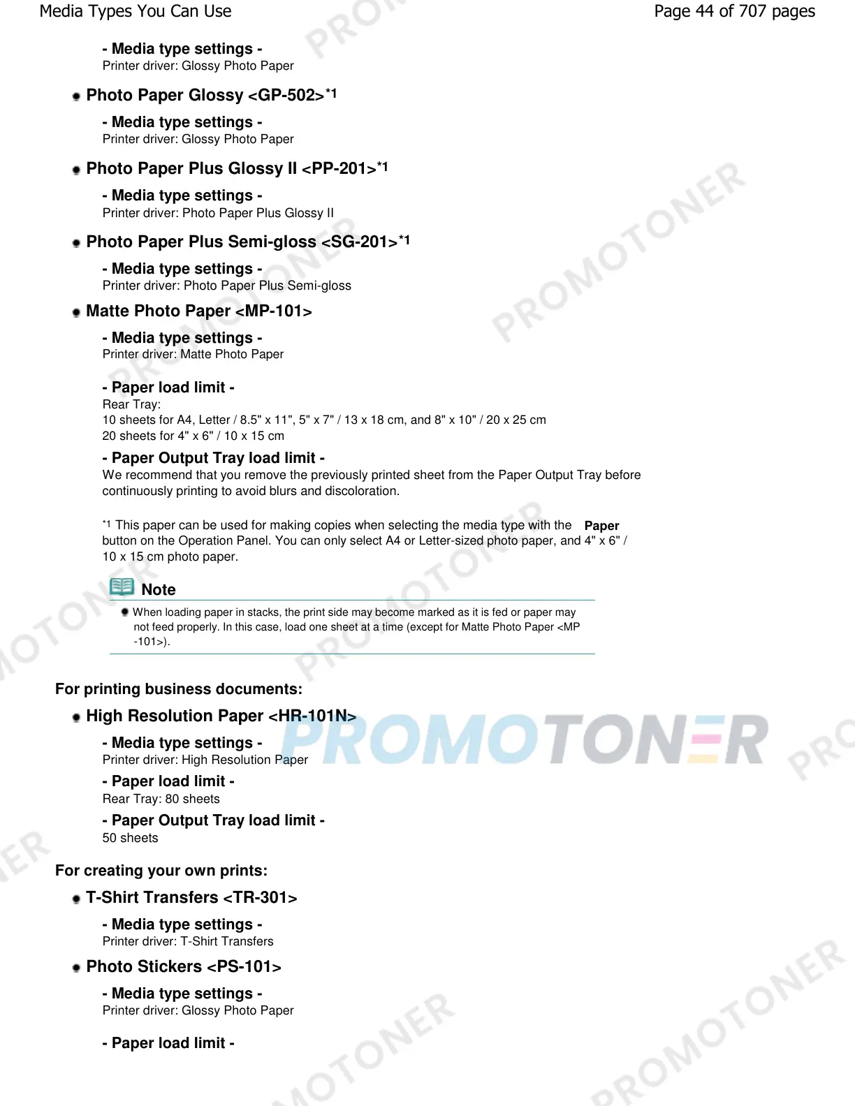 not feed properly. In this case, load one sheet at a time (except for Matte Photo Paper <MP