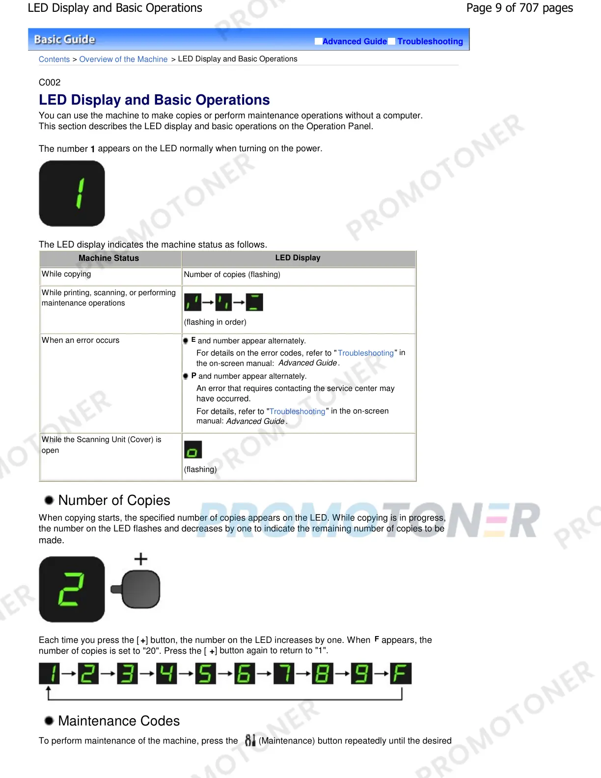When copying starts, the specified number of copies appears on the LED. While copying is in progress,
