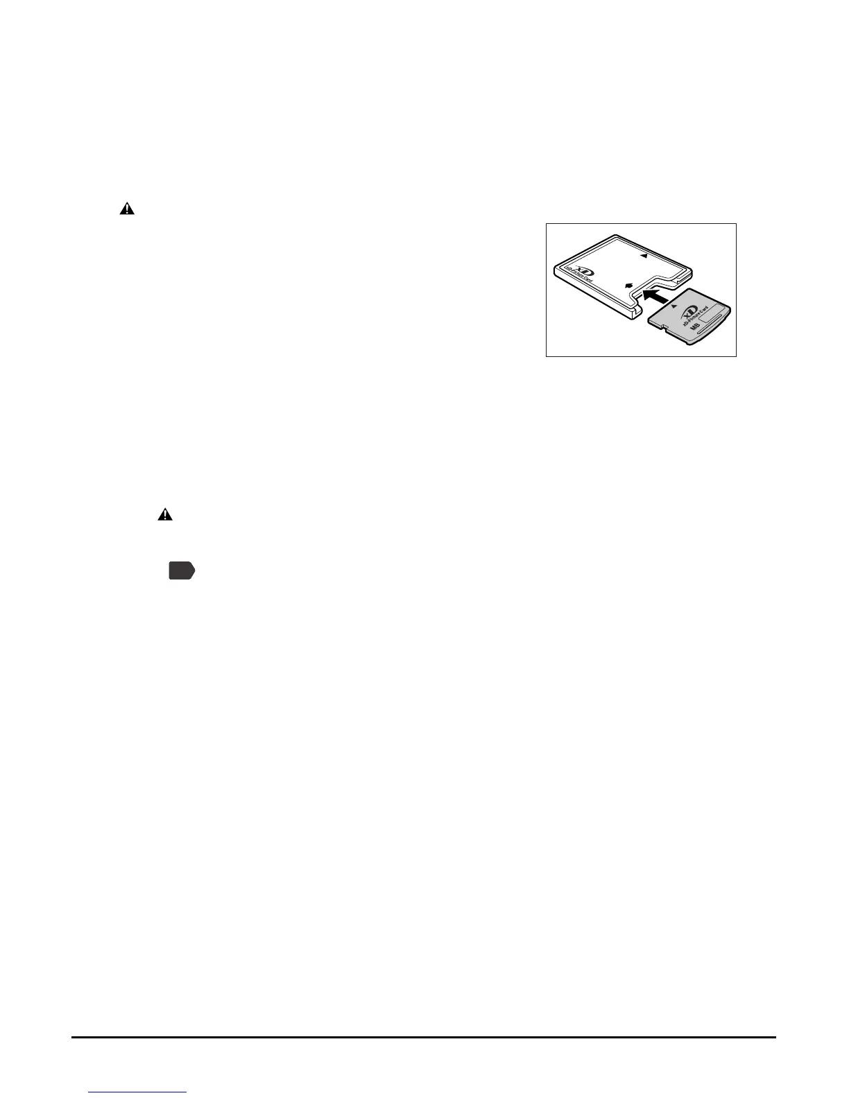• Do not force a memory card into a CF card adaptor while the adaptor is in the card slot.