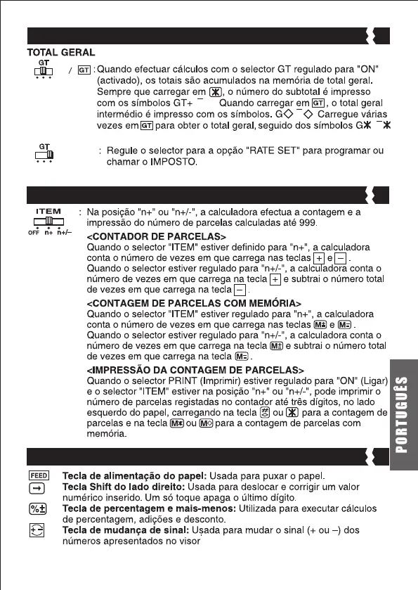 Canon MP41DHIII - Selector de Contagem de Parcelas; Selector Total Geral; Taxas Conjunto de Availar; Índice de Teclas