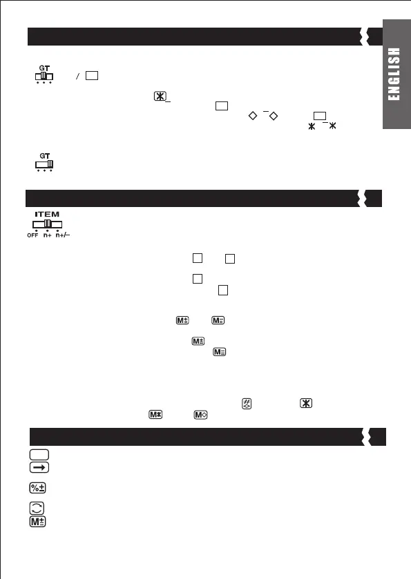When the "ITEM" switch is set at "n+", the calculator counts the