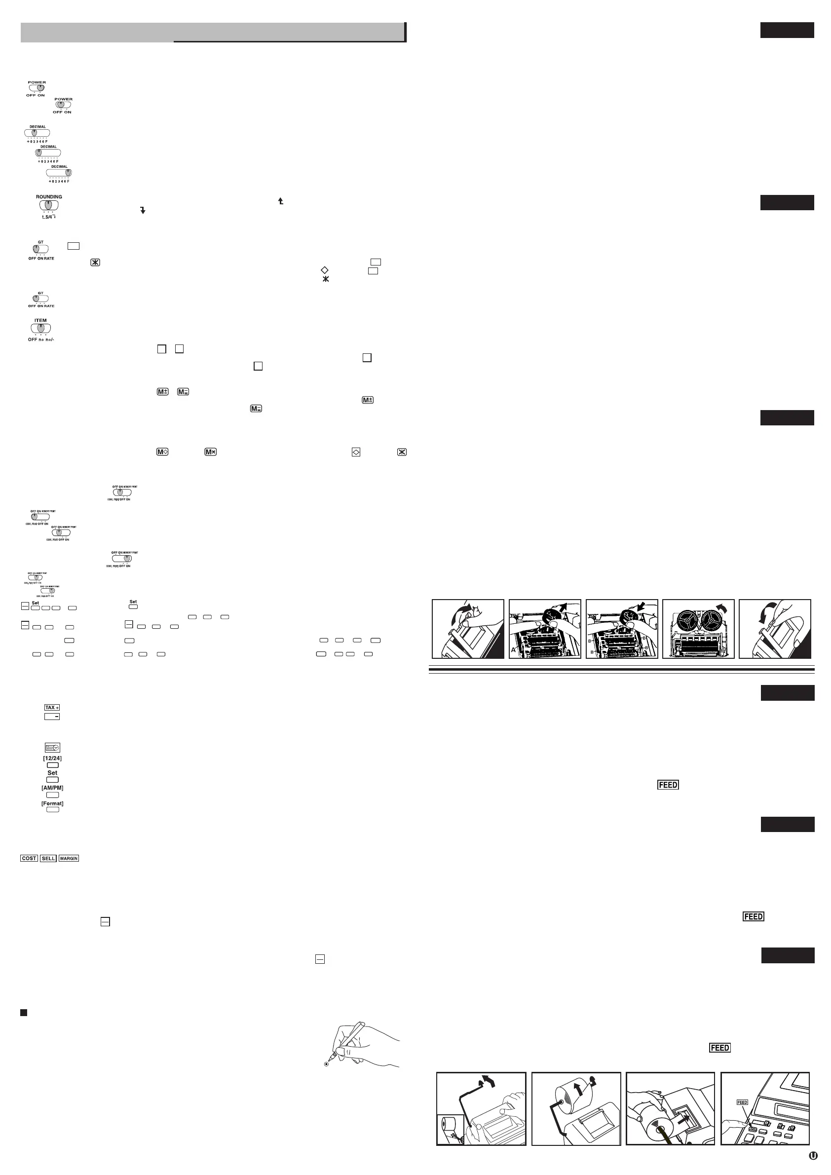 4) Encienda la calculadora. Presione la tecla de advance de papel para avanzar el