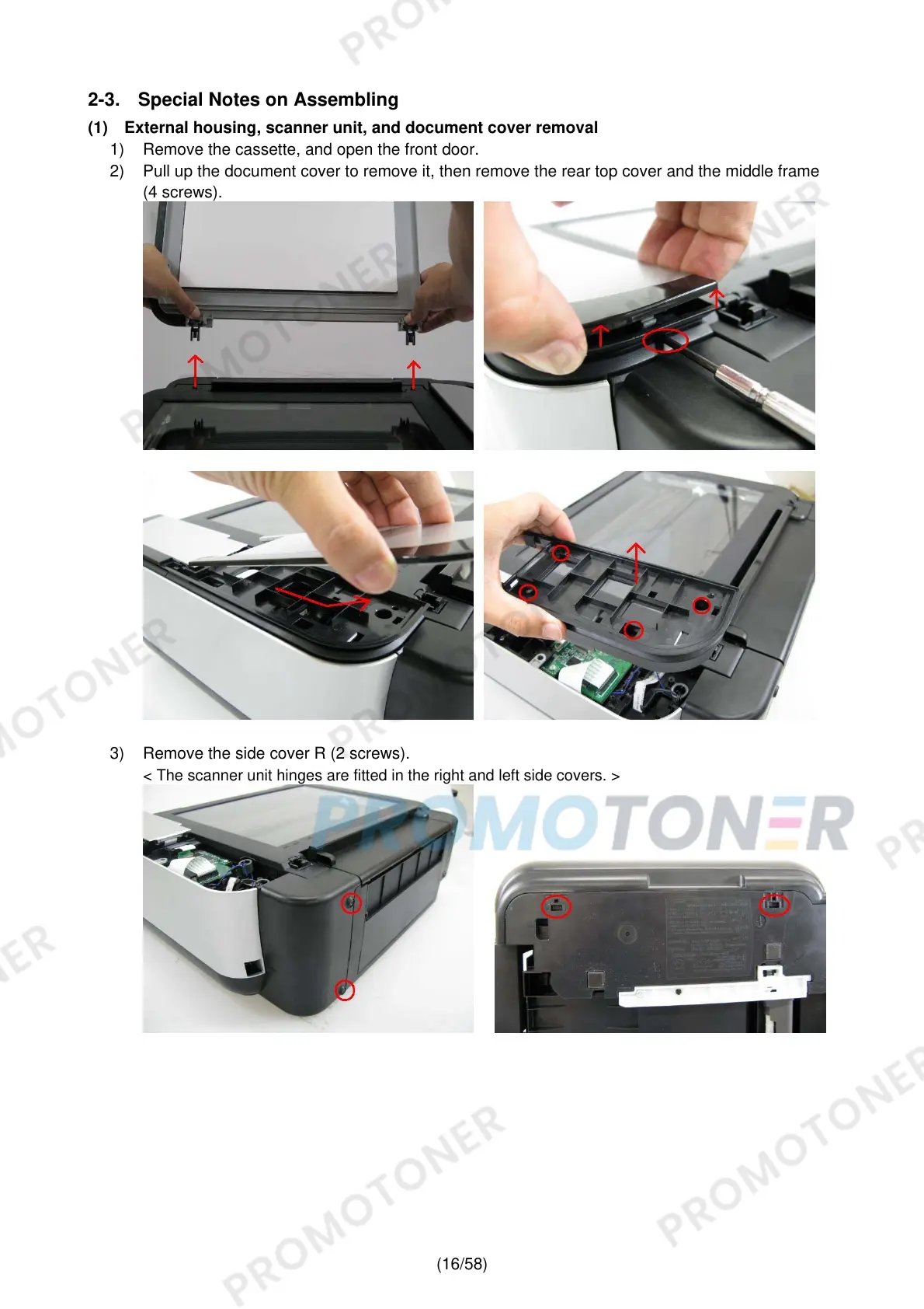 (1) External housing, scanner unit, and document cover removal