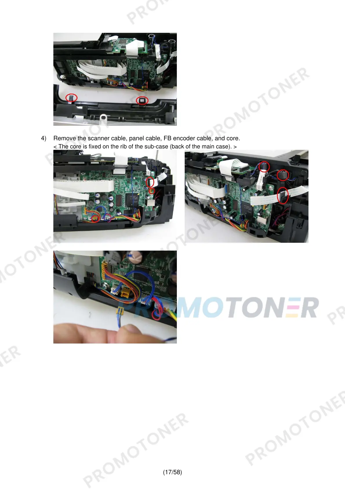 4) Remove the scanner cable, panel cable, FB encoder cable, and core.