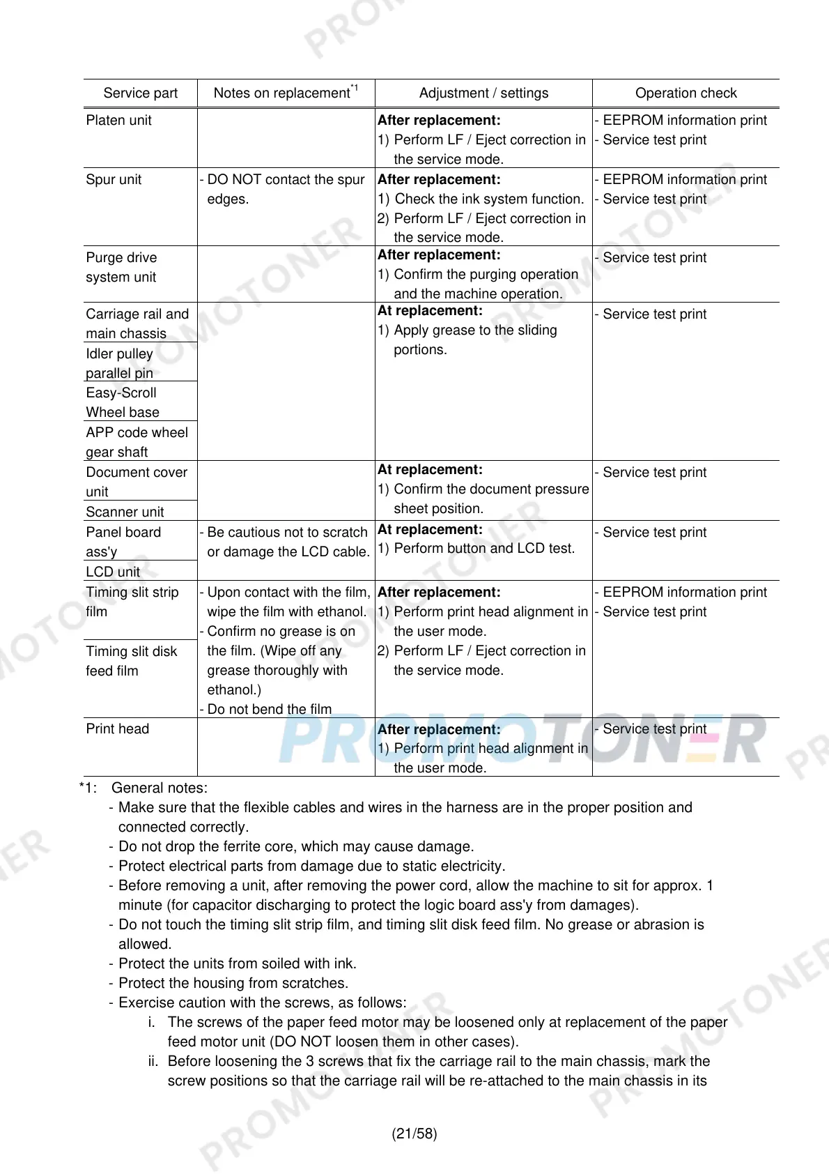 i. The screws of the paper feed motor may be loosened only at replacement of the paper