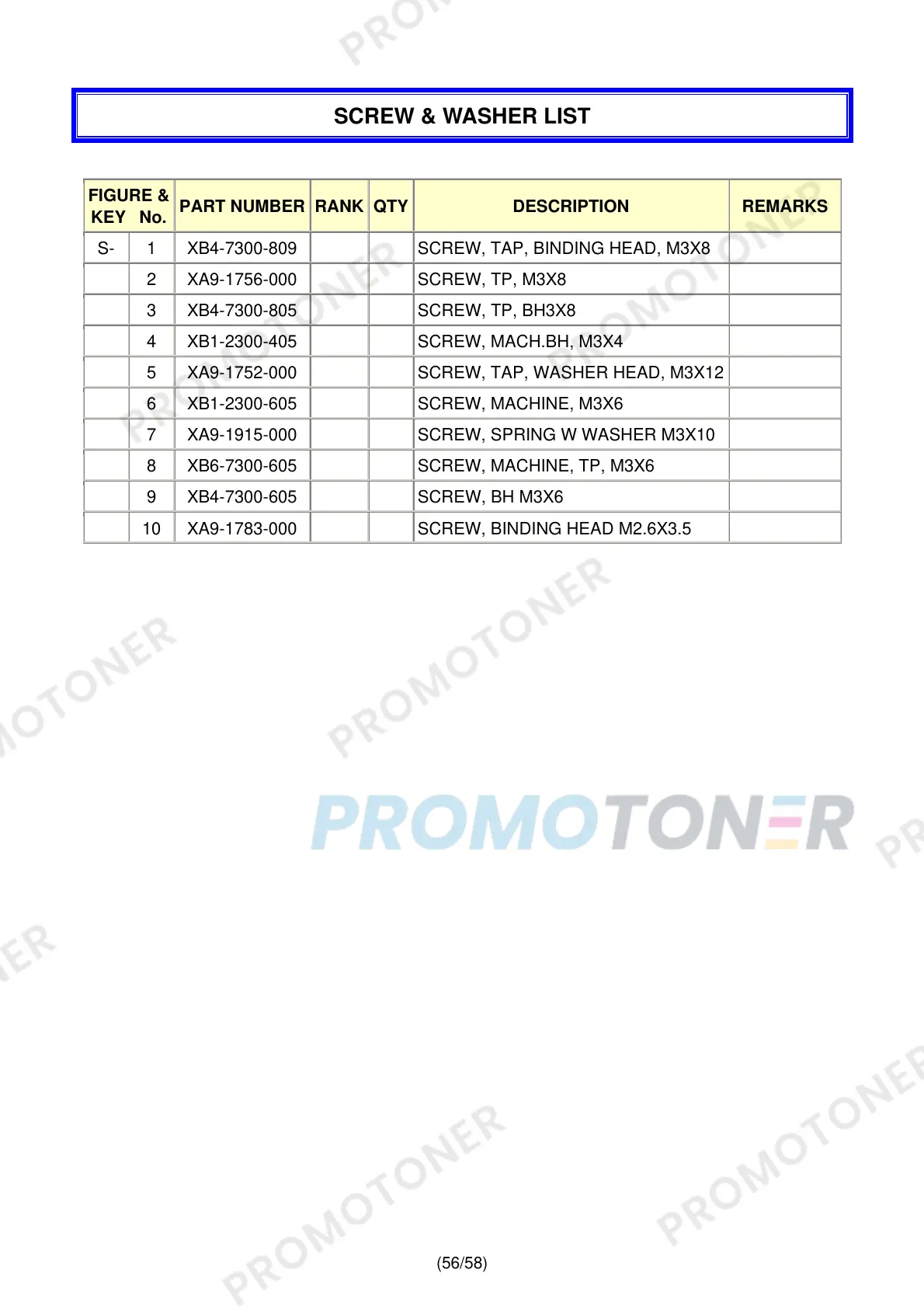 PART NUMBER RANK QTY DESCRIPTION REMARKS