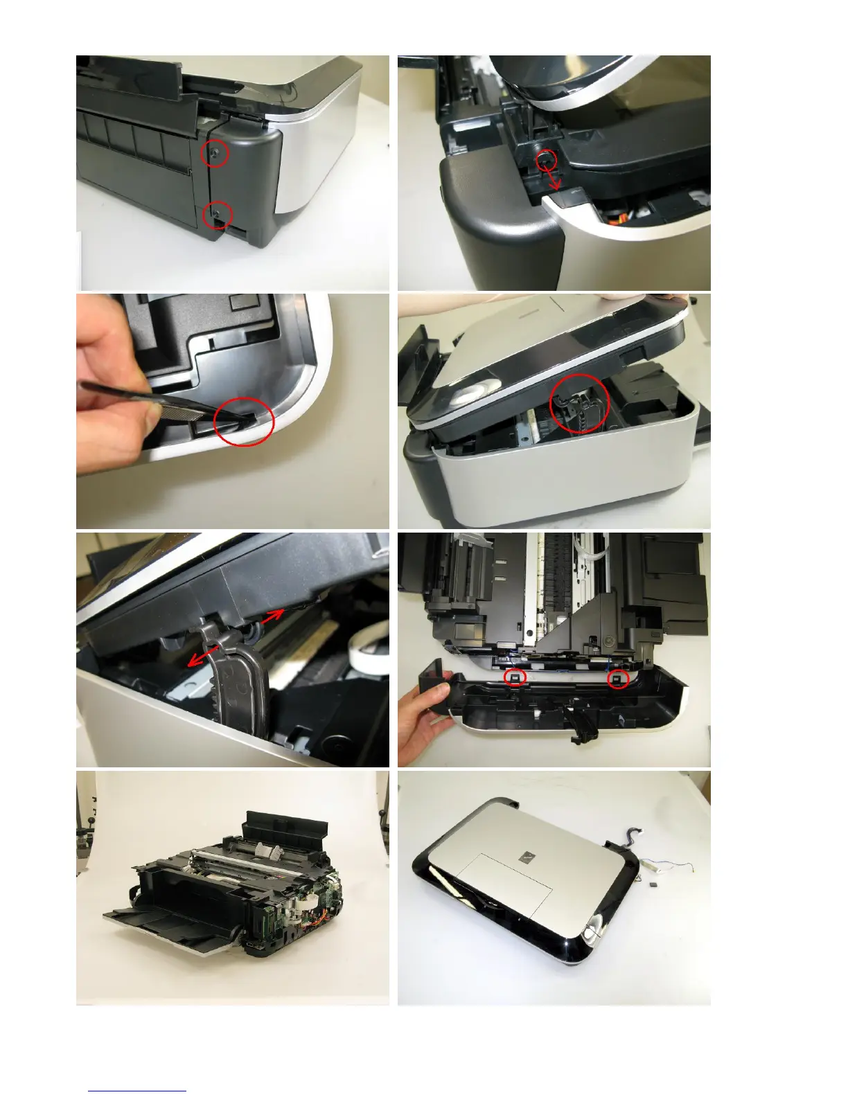 4) Remove the side cover L, scanner unit, then document pressure plate unit (2 screws).<While holding the scanner unit,