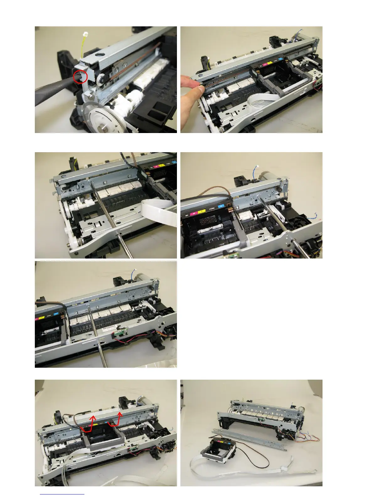 cable holder from the front chassis. After the 3 screws are removed, slowly put down the carriage rail.