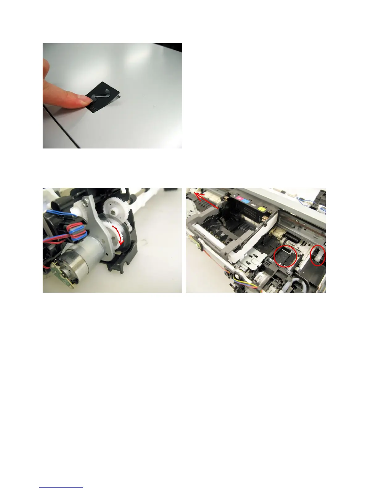 1) Rotate the APP motor drive gear toward the back of the machine to unlock the carriage.