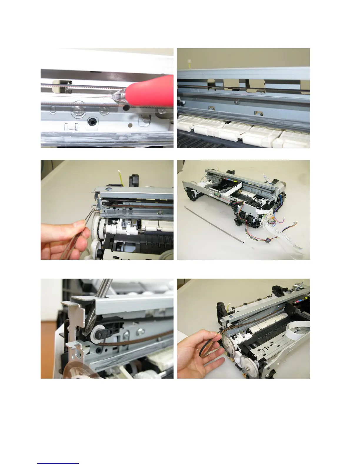 3) Pass the head of a flat-blade screwdriver through the hole of the main chassis, and press the carriage belt to release it