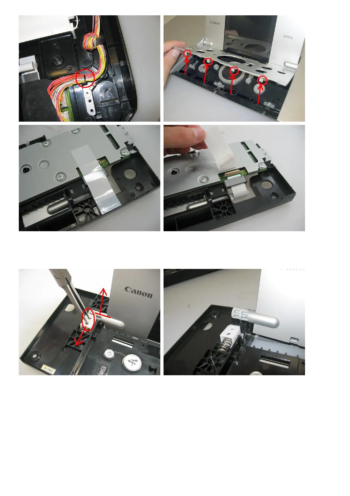 <Hold the LCD hinge by inserting the both noses of a long-nose plier into the holes in the hinge. Then, slide the