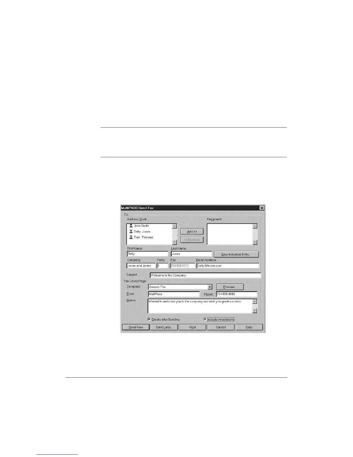 Whenever you send a PC fax, you see the MultiPASS Send Fax