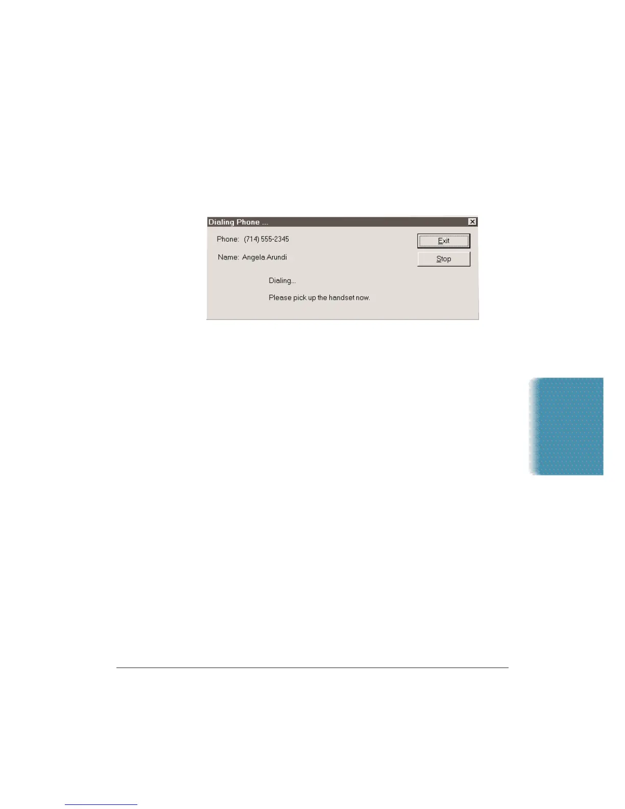 5. When the Dialing Phone dialog box displays,you are prompted to