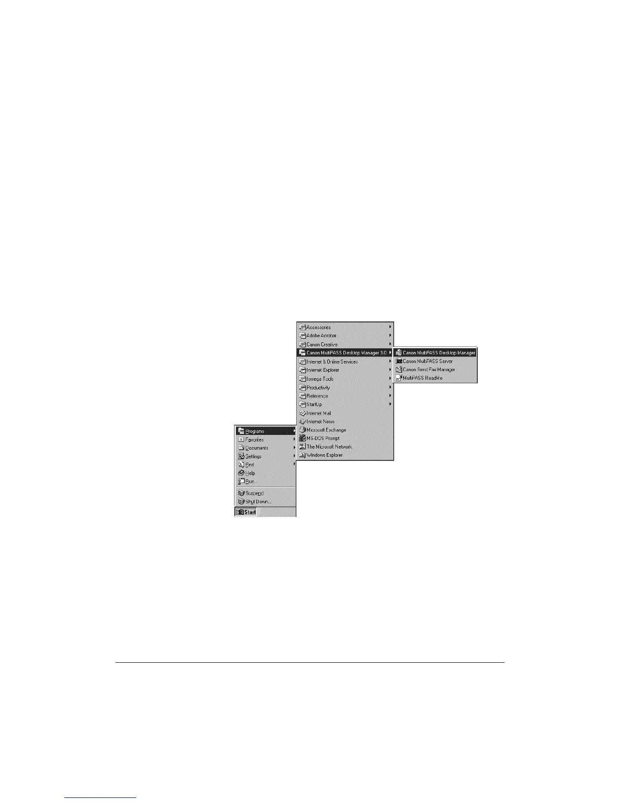 ❍ Point to Canon MultiPASS Desktop Manager 3.0 and then click