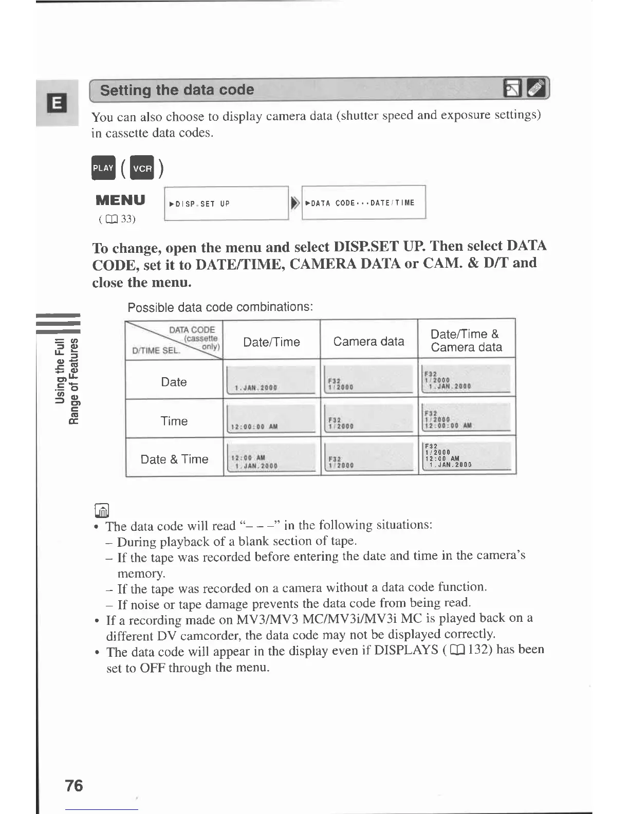 Canon MV 3 - Setting the data code