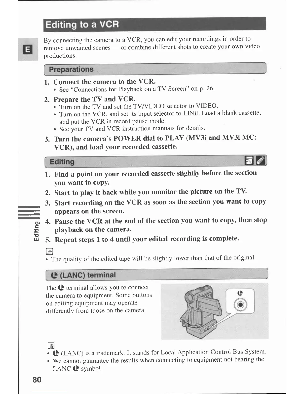 Canon MV 3 - Editing to a VCR