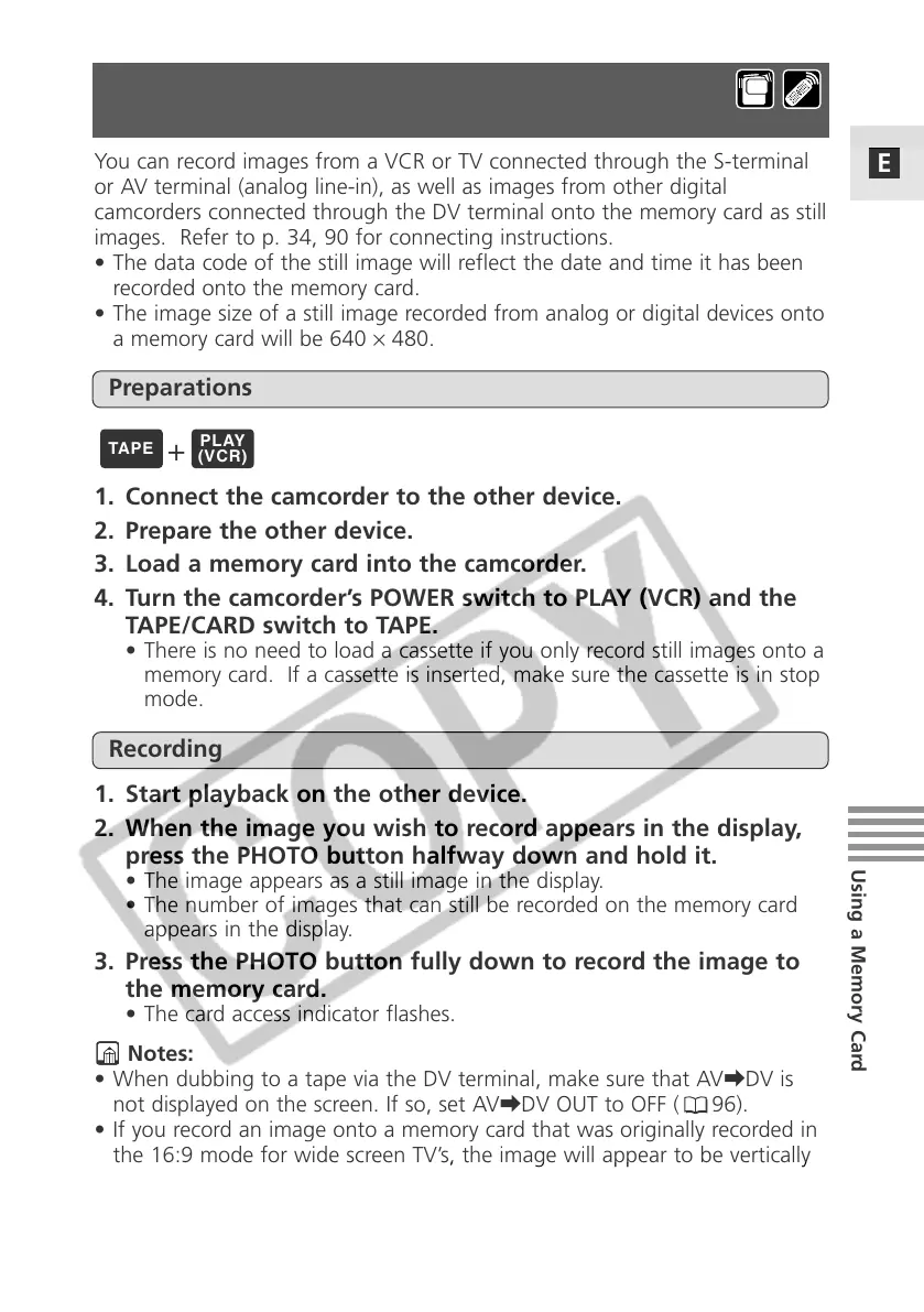 • The shutter sound doesn’t sound in TAPE PLAY(VCR) mode.
