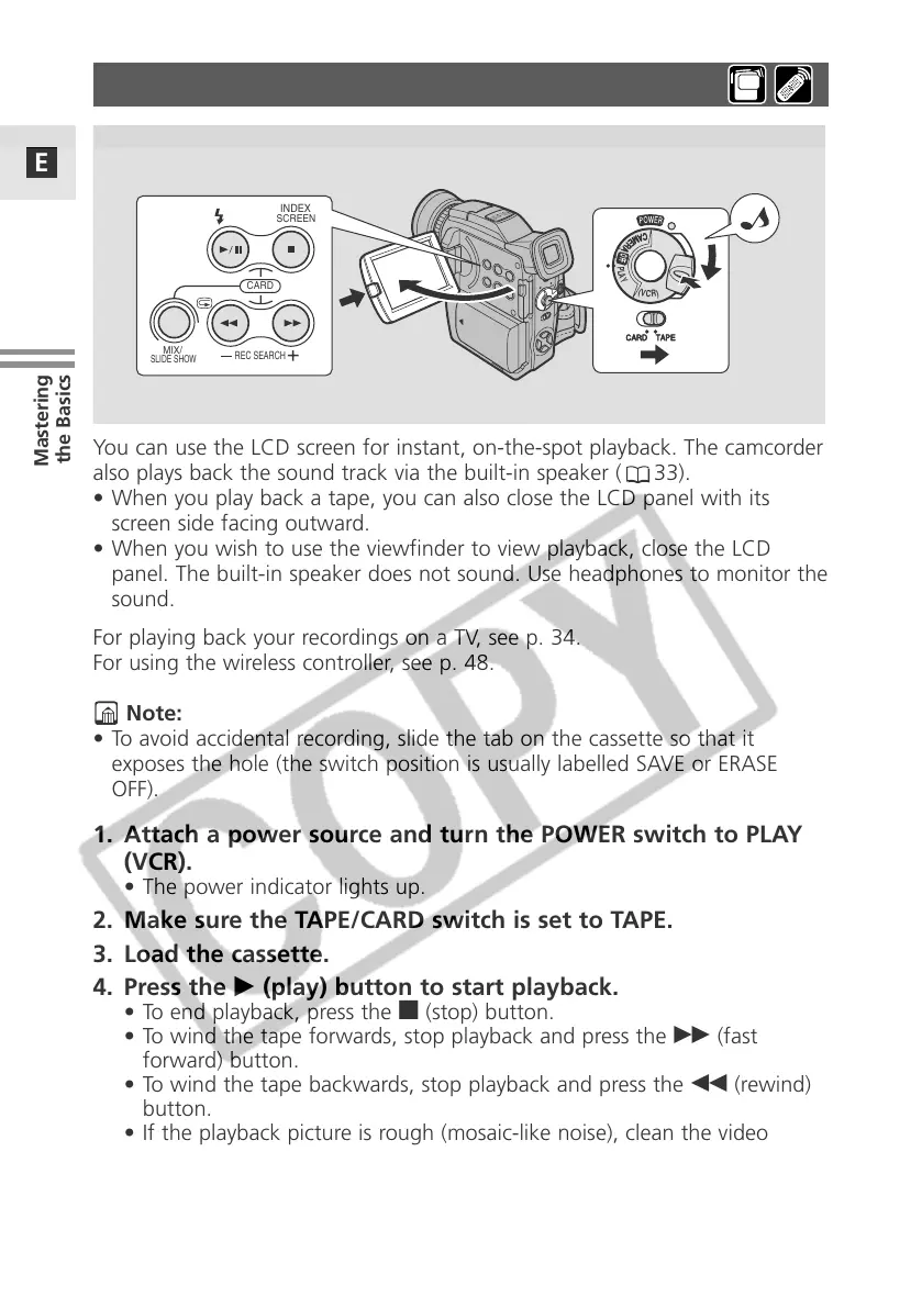 also plays back the sound track via the built-in speaker ( 33).