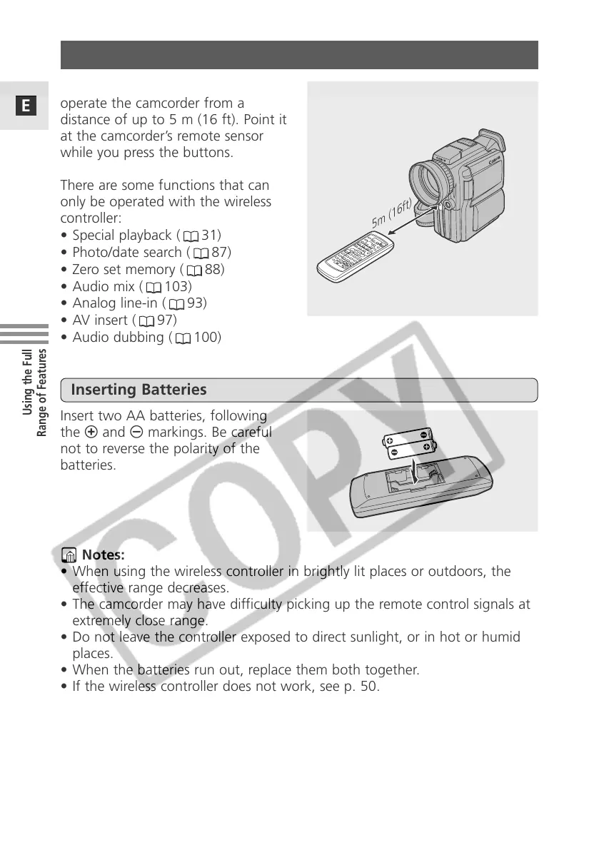 • The camcorder may have difficulty picking up the remote control signals at