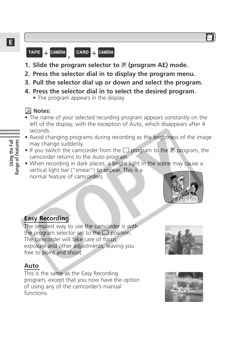 camcorder returns to the Auto program.
