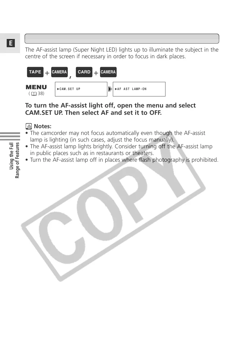 Turning Off the AF-Assist Lamp