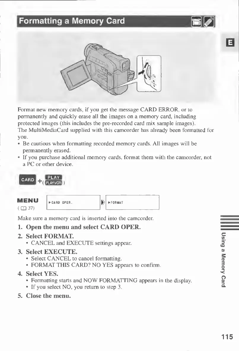 Canon MV430 - Formatting a Memory Card.115