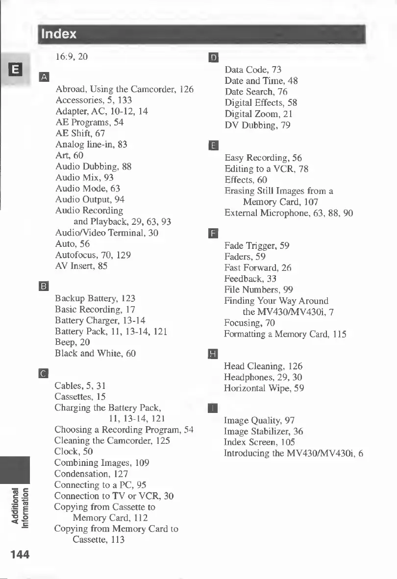 Canon MV430 - Index
