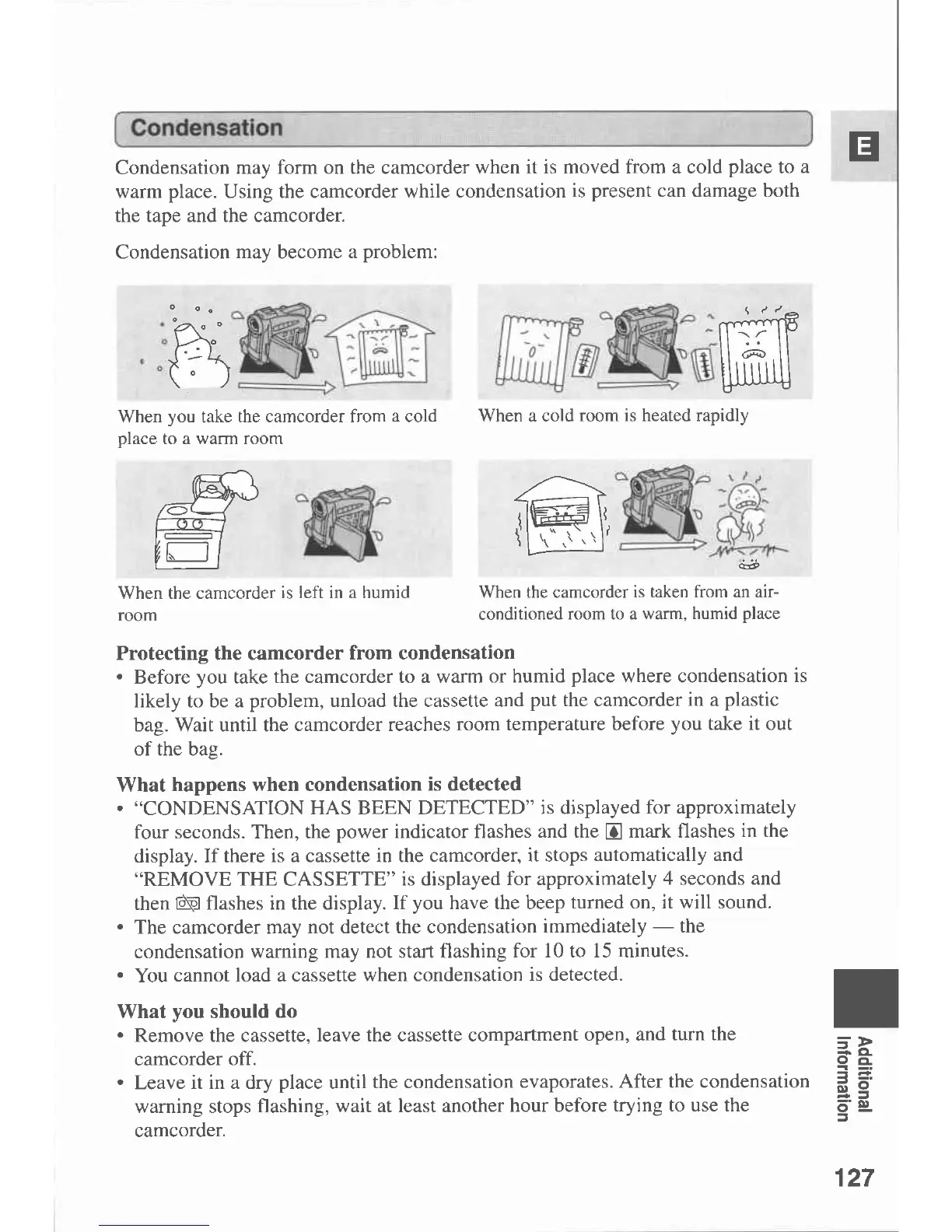 Canon MV430 - Condensation; Protecting the Camcorder from Condensation; What Happens When Condensation Is Detected