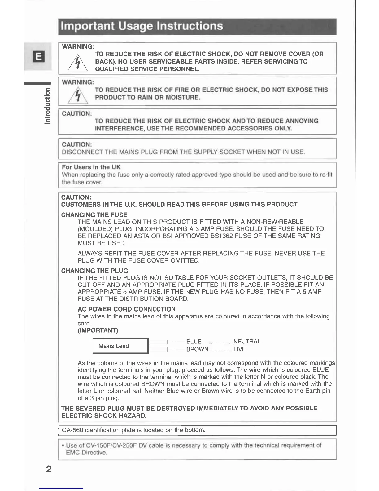 Canon MV430 - Important Usage Instructions; Changing the Fuse; Changing the Plug; AC Power Cord Connection