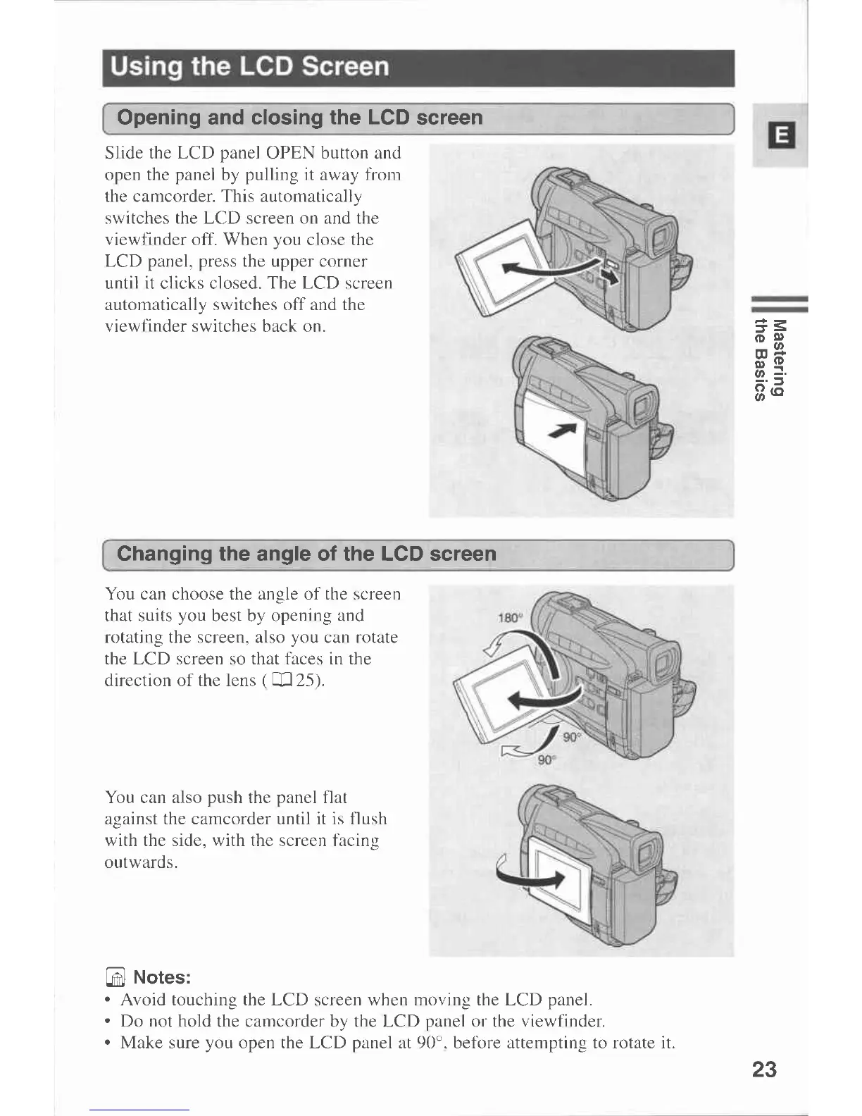 Canon MV430 - Using the LCD Screen; Opening and Closing the LCD Screen; Changing the Angle of the LCD Screen