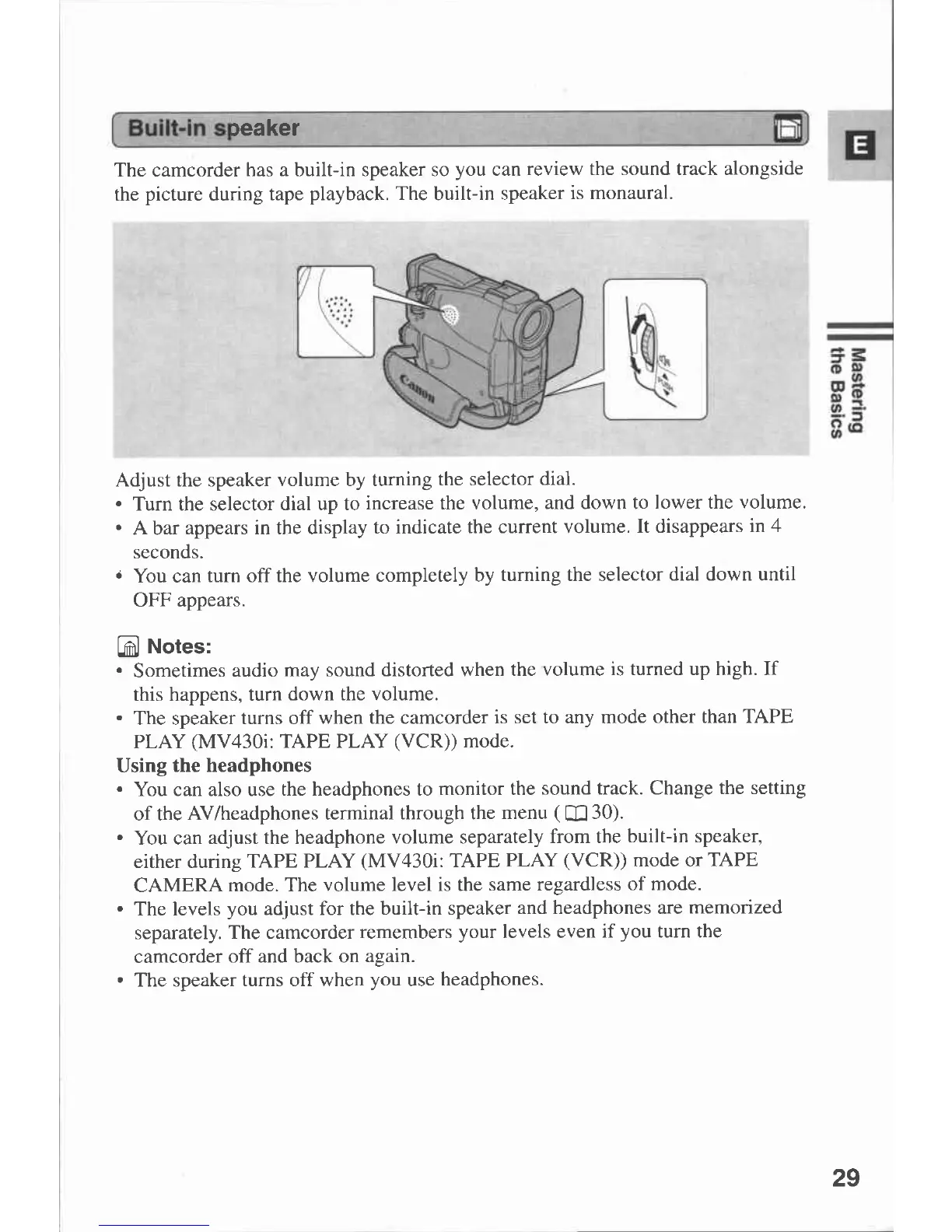 Canon MV430 - Built-In Speaker; Using the Headphones