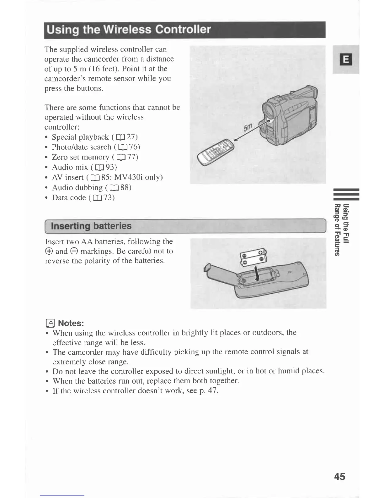 Canon MV430 - Using the Wireless Controller; Inserting Batteries