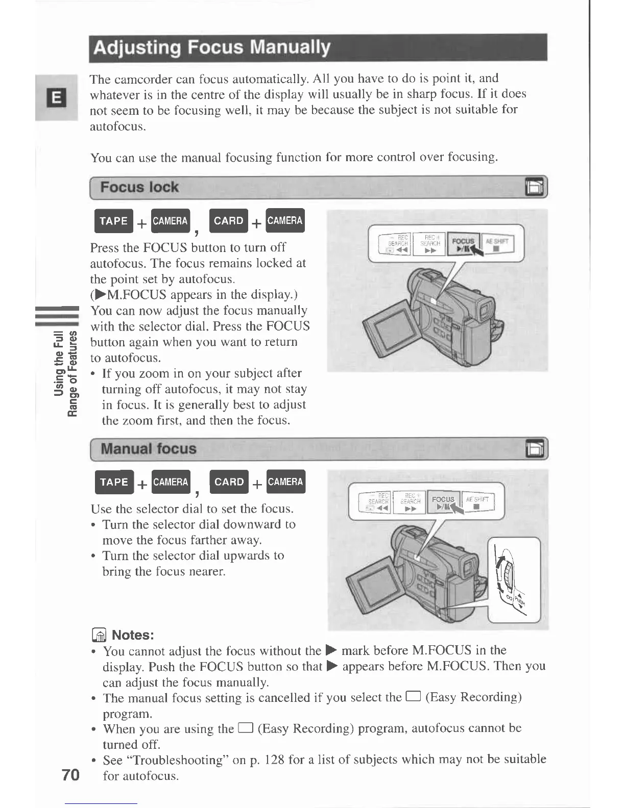 Canon MV430 - Adjusting Focus Manually; Focus Lock; Manual Focus